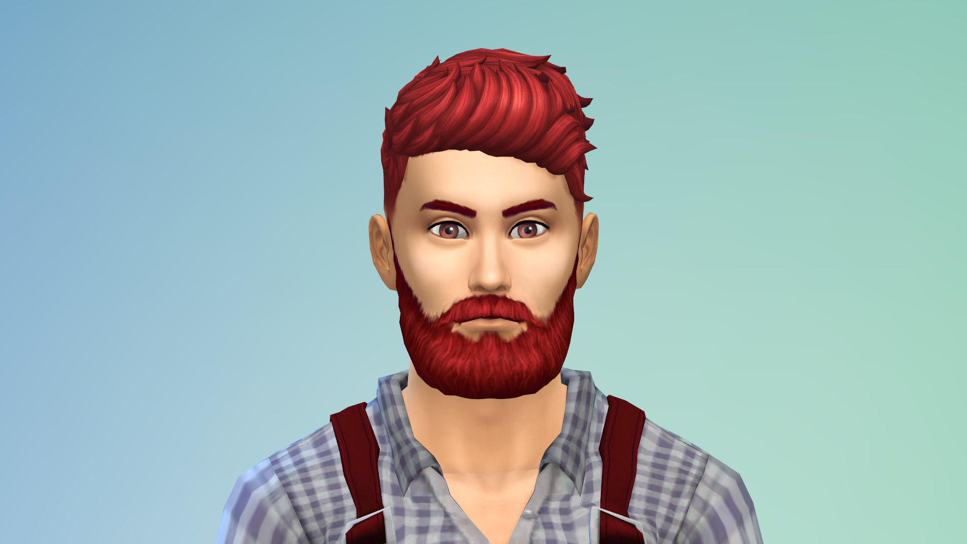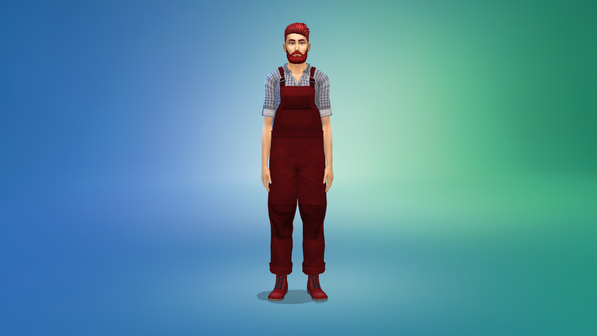 C) As for the other two, I’ve got Wickerman’s face and body down (including an appropriately “unnatural” eye color, as for some reason reddish eyes are available to plain human Sims, and given his coaster’s whole thing is “throwing people into the sacrificial flames. . .”), along with some everyday outfits, and I’ve selected a Chihuahua model for Nemesis and played around a bit with coat colors in paint mode (namely, making said Chihuahua a lot more pink XD). I don’t have pictures of the doggo yet, but I do have shots of the others: